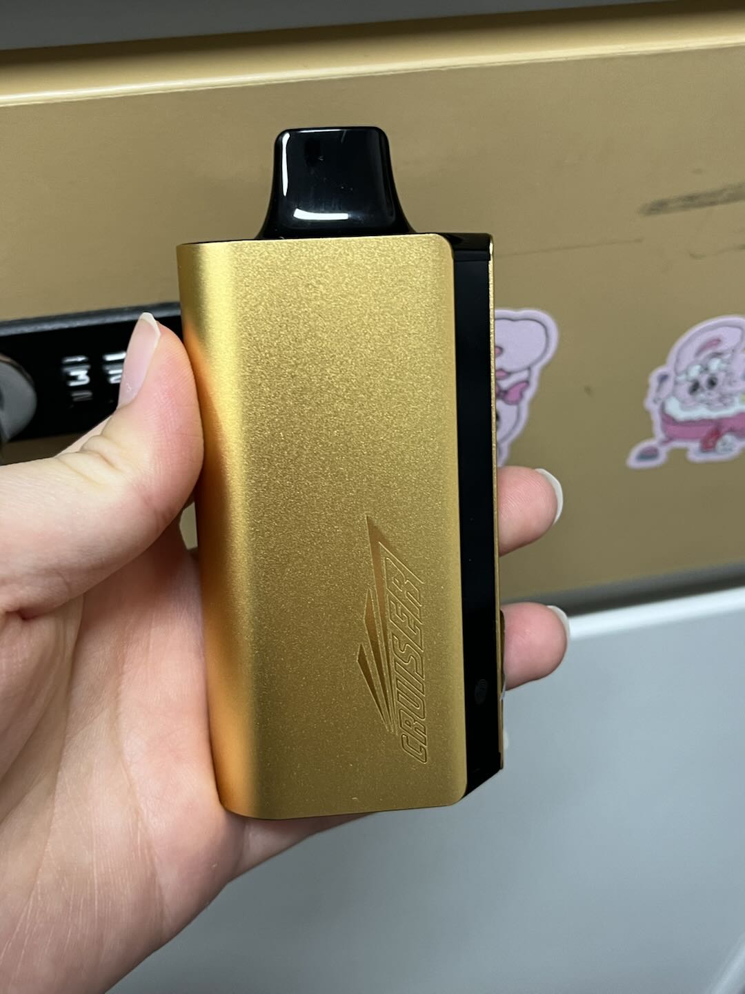 Love the gold finish, looks premium. Hits strong and flavour is spot on for a strawberry – actually tastes like the candy. Lasted me over a week with heavy use.